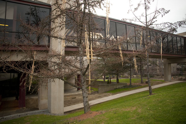 Thirteen Moons, with Tamaracks, 2011 site specific, carved and constructed white pine